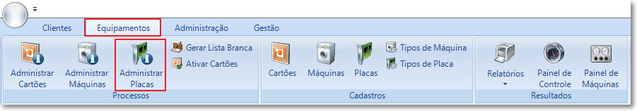 Menu disponível em Equipamentos > Processos > Administrar Placas