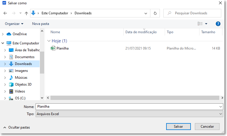 Escolhemos o nome do arquivo e diretório a ser gravado: