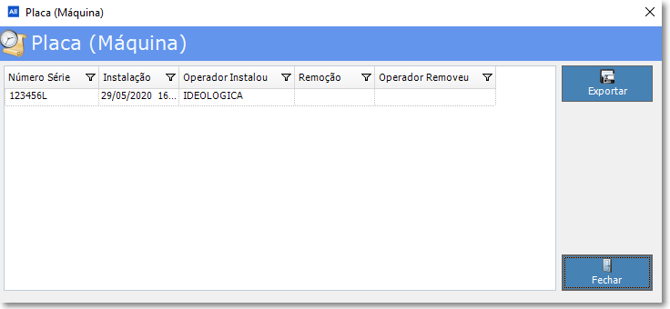 Podemos ver o Histórico uma placa clicando no botão