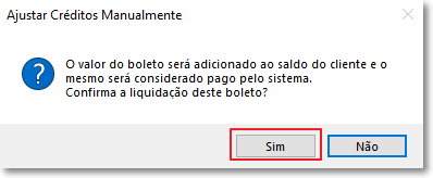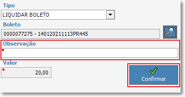 Clique em "Confirmar", aparecerá a tela para que seja realmente confirmada a liquidação do boleto.