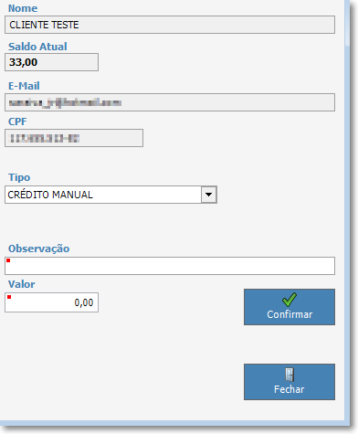 O sistema atualizará o saldo do cliente.