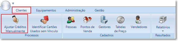 Menu disponível em Clientes > Processos > Ajustar Créditos Manualmente