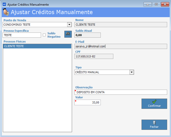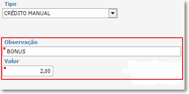 Figura 2 - Ajustar créditos manualmente