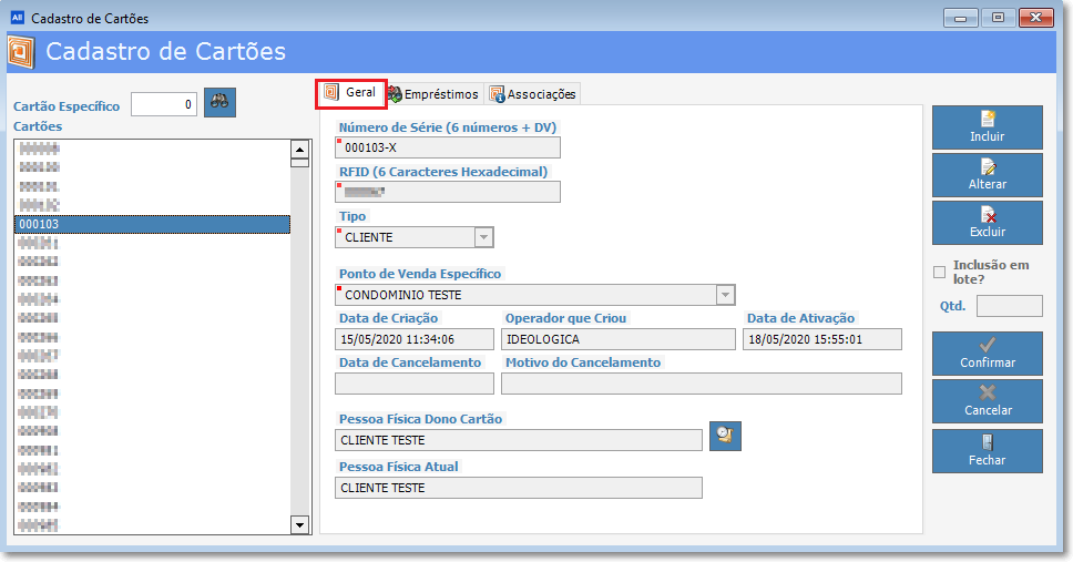 Clicamos em "Incluir em lote?" para gerar mais de 1 cartão.