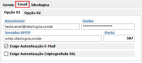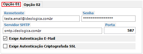Na aba e-mail, Opção 1, temos todos os dados no nosso servidor de e-mail:
