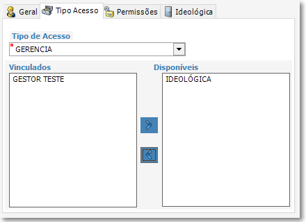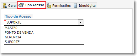 Só poderá ter acesso á aba Permissões se o Usuário tiver a permissão