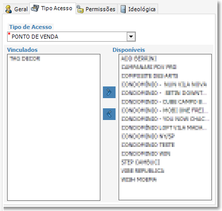 Só poderá ter acesso aos Pontos de Vendas gerenciados pelos Gestores selecionados.