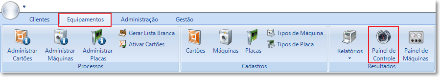 Menu disponível em Equipamentos > Resultados > Painel de Controle
