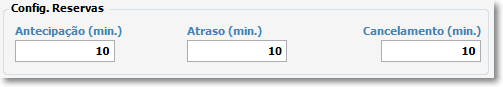 - Antecipação(min): É o tempo em minutos em que o cliente pode iniciar o ciclo entes do horário da reserva.