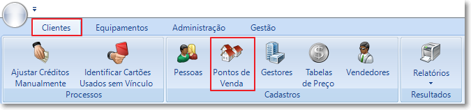 Menu disponível em Clientes > Cadastros > Pontos de Venda