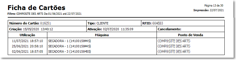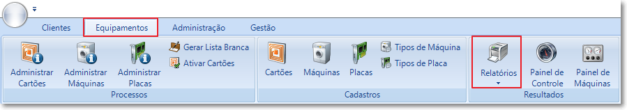 Menu disponível em Equipamentos > Resultados > Relatórios