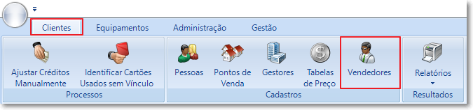 Menu disponÃvel em Clientes > Cadastros > Vendedores